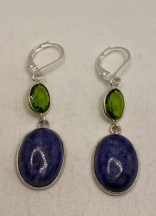 Vintage Genuine Gemstone 925 Sterling Silver Earrings