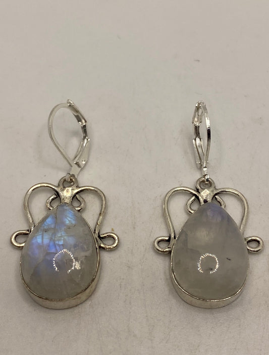 Vintage Rainbow Moonstone Sterling Silver Lever Back Dangle Earrings