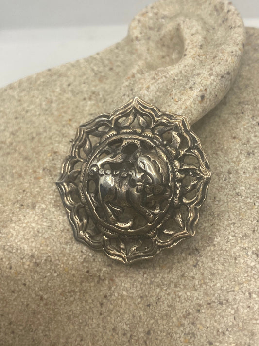 Antique Vintage Asian Lion 925 Sterling Silver Clip On Button Earrings
