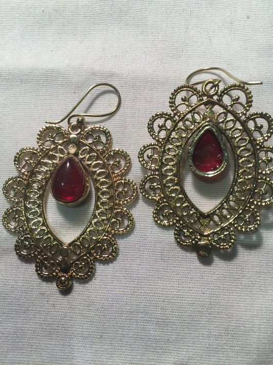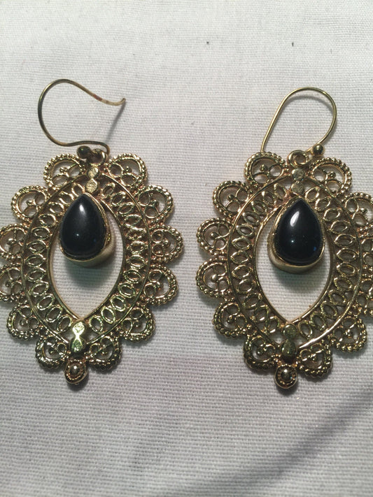 Vintage Onyx Golden Bronze Lace Dangle Earrings