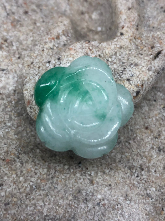 Genuine Green Jade Flower Gemstone Silver Bronze Stud Earrings