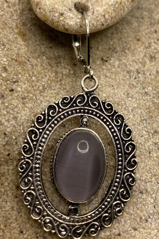 Vintage Purple Cats Eye Glass Earrings 925 Sterling Silver Leverback