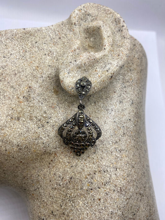 Vintage Cameo Earrings Marcasite Pink 925 Sterling Silver Deco Dangle Chandelier