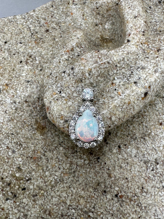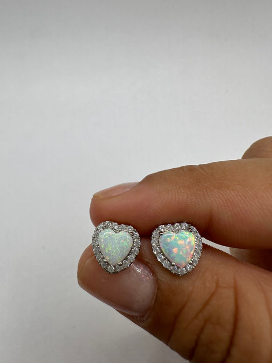 Vintage White Opal Earrings White Sapphire 925 Sterling Silver Dangle