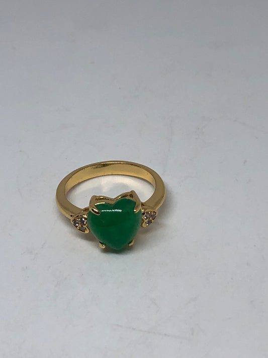Vintage Lucky Green Nephrite Jade Heart Gold Bronze Ring