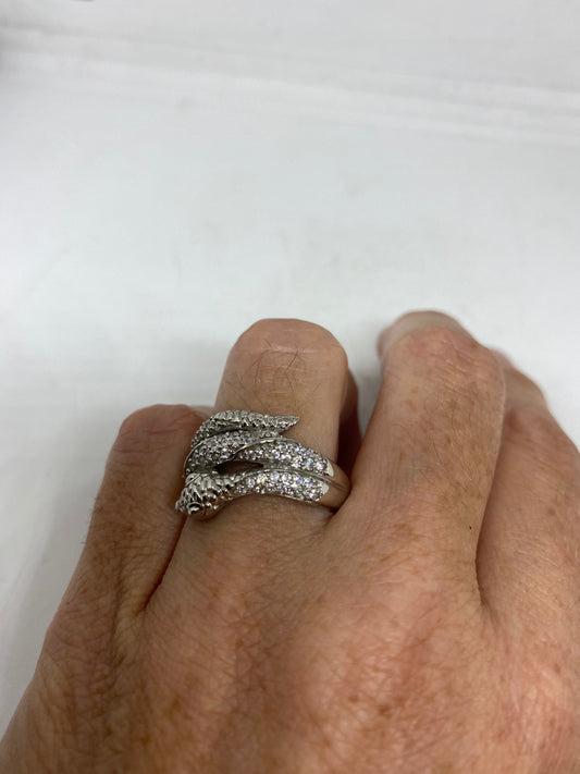 Vintage Snake Ring 925 Sterling Silver Crystal