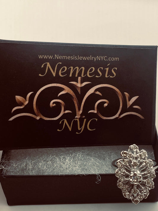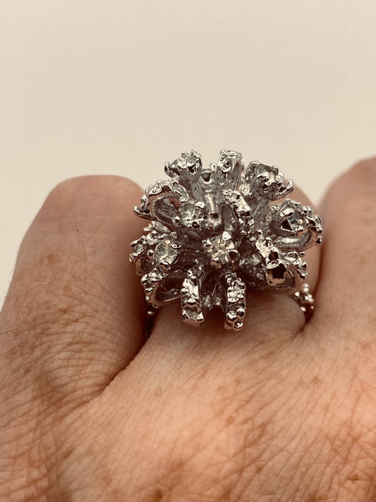 Vintage White Sapphire and Topaz 925 Sterling Silver Cocktail Wedding Band Ring