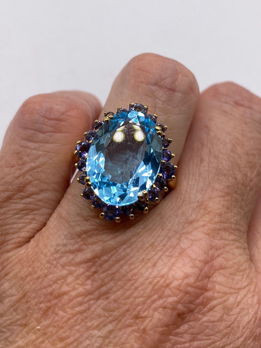 Vintage Genuine Blue Topaz Gold 925 Sterling Silver Ring