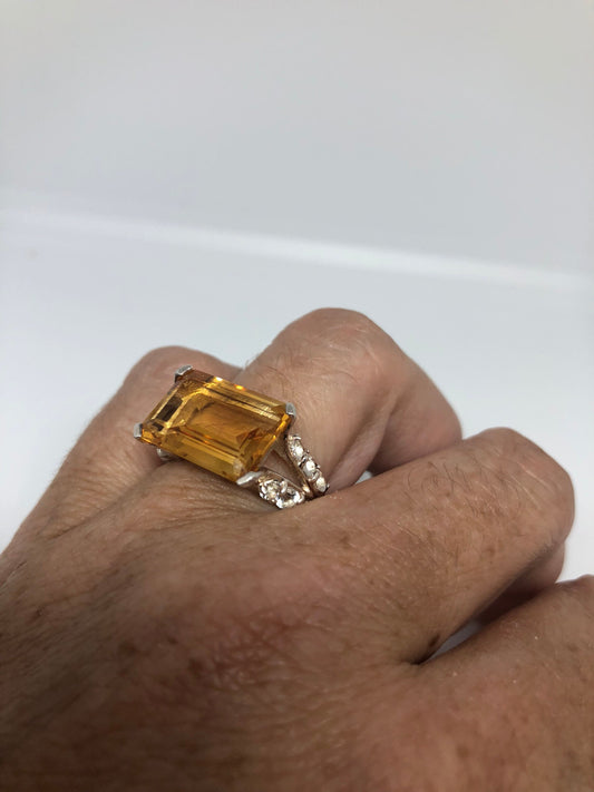Vintage Handmade Golden Genuine Citrine 925 Sterling Silver Gothic Ring