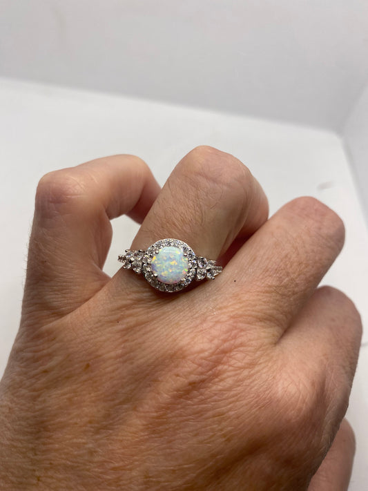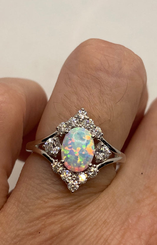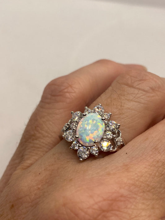 Vintage Ethiopian Fire Opal Band 925 Sterling Silver Crown Ring