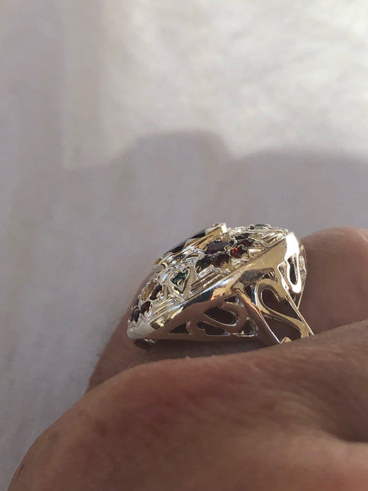 Vintage Mixed Genuine Gemstones 925 Sterling Silver Band Ring
