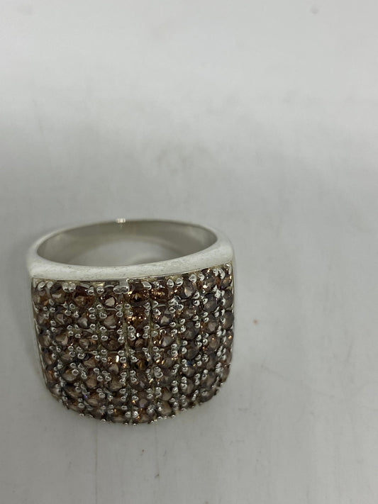 Vintage Smoky Topaz Ring Golden 925 Sterling Silver