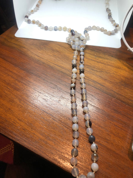 60 Inch Hand Knoted Vintage Mixed color White Onyz beaded Necklace