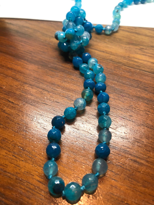 60 Inch Hand Knoted Vintage Blue chalcedony beaded Necklace