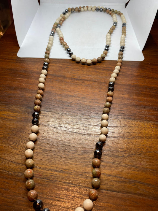 60 Inch Hand Knoted Vintage Hematite Jasper beaded Necklace