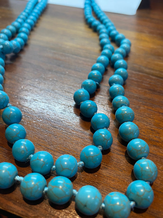 88 Inch Hand Knoted Vintage Blue Howlite beaded Necklace