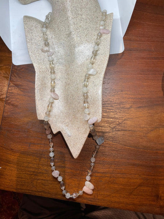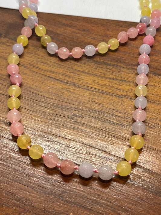 60 Inch Hand Knoted Vintage pastel chalcedony beaded Necklace