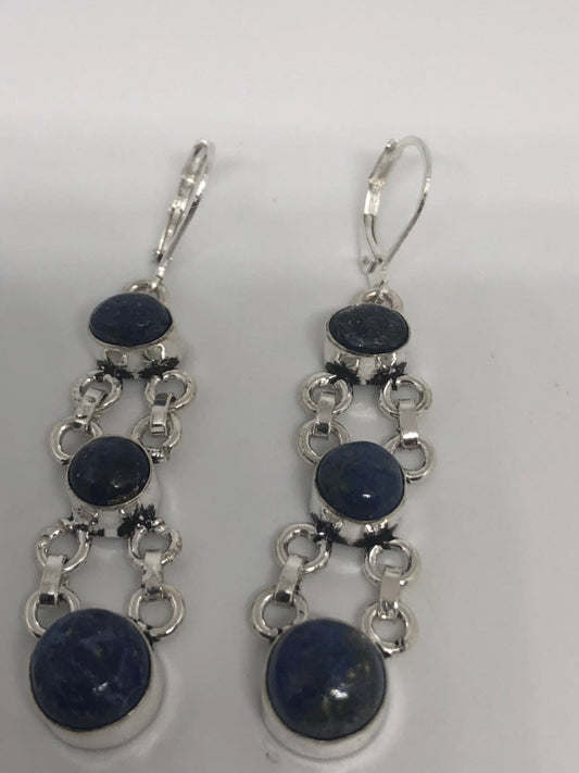Antique Vintage Blue Lapis Lazuli Silver Dangle Earrings