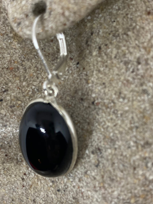 Antique Vintage Black Onyx 925 Silver Dangle LeverBack Earrings