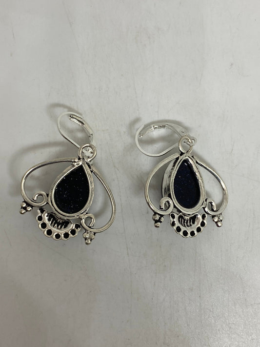 Antique Vintage Blue Glass Silver Dangle Earrings