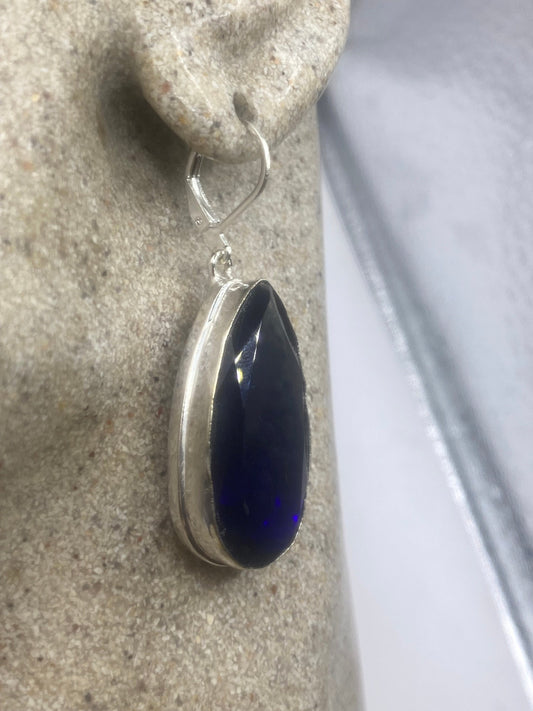Antique Vintage Blue Cobalt Glass Silver Dangle Earrings