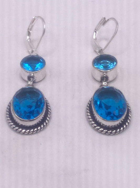 Antique Vintage Blue Labradorite Blue Topaz Silver Dangle Lever Back Earrings