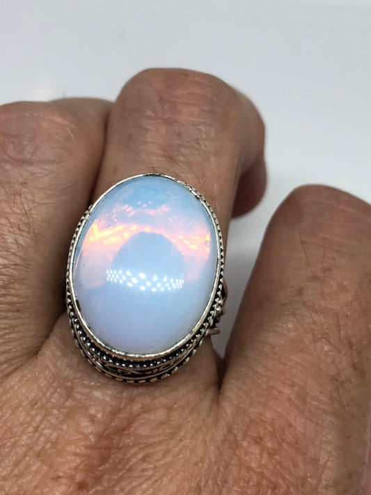 Vintage Deep Blue Opal Vintage Art Glass Ring About an Inch Long Ring