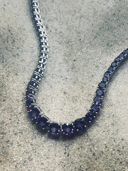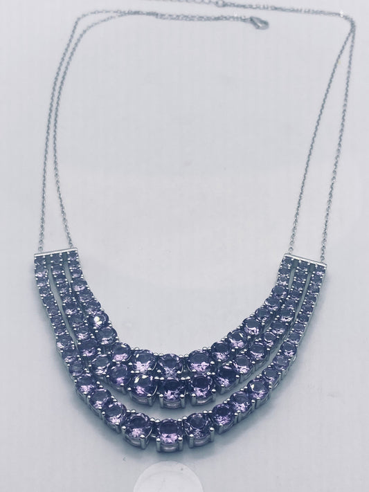 Vintage Deco Purple Amethyst 925 Sterling Silver Necklace