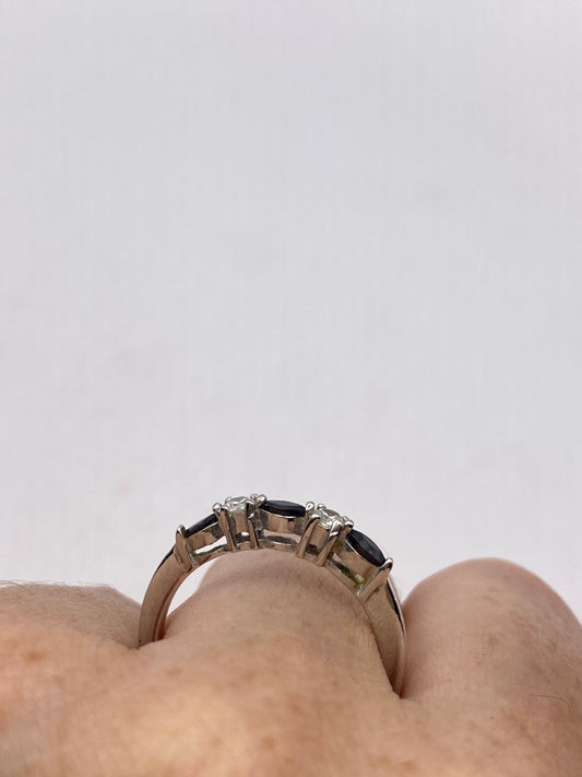 Vintage Deep Blue Black Sapphire and white Sapphire 925 Sterling Silver Ring