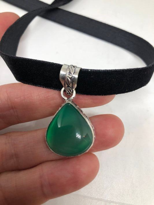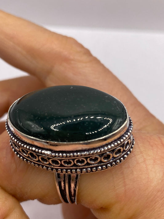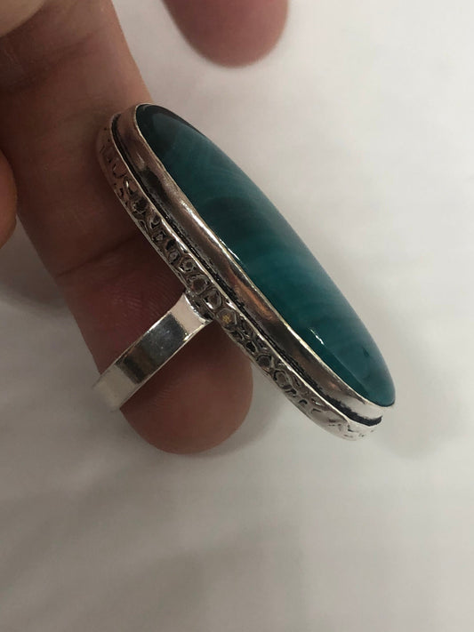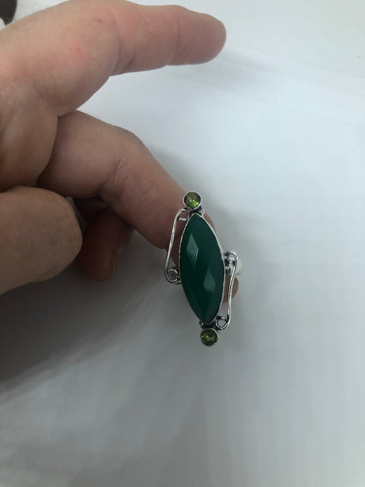 Vintage Green Agate Silver Ring About an Inch Long Knuckle Ring
