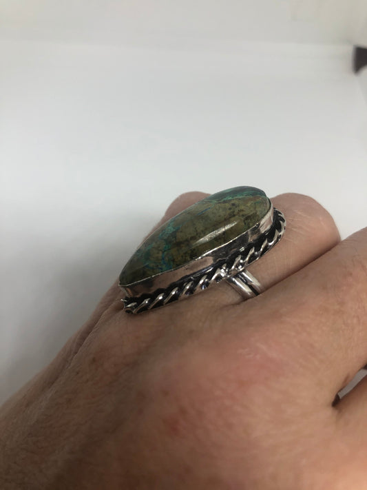 Vintage Green Abalone White Bronze Silver Cocktail Ring