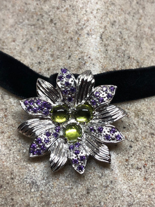 Vintage Green Peridot Choker Handmade 925 Sterling Silver Pendant