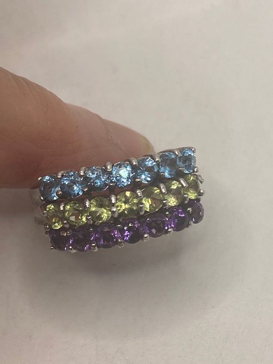 Vintage Green Peridot and Amethyst 925 Sterling Silver Gothic Star Ring