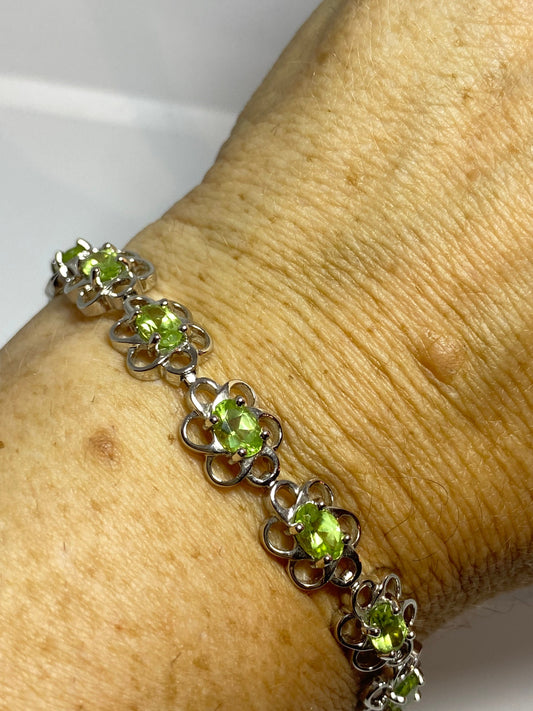 Vintage Green Peridot 925 Sterling Silver Tennis Bracelet