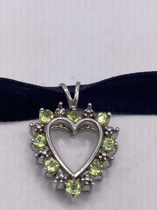 Vintage Green Peridot Choker 925 Sterling Silver Heart Pendant Necklace
