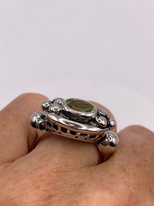 Vintage Green Peridot Filigree 925 Sterling Silver Cocktail Ring