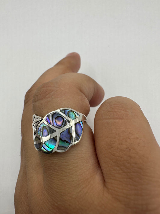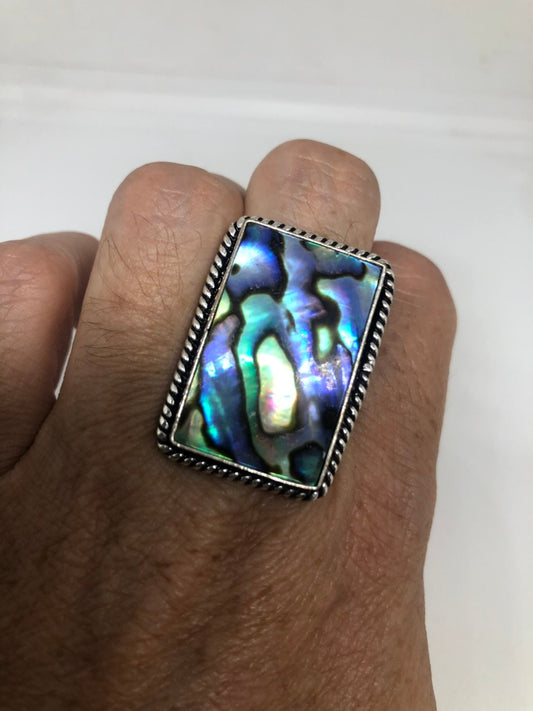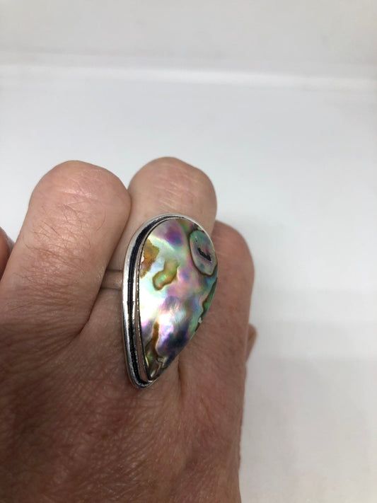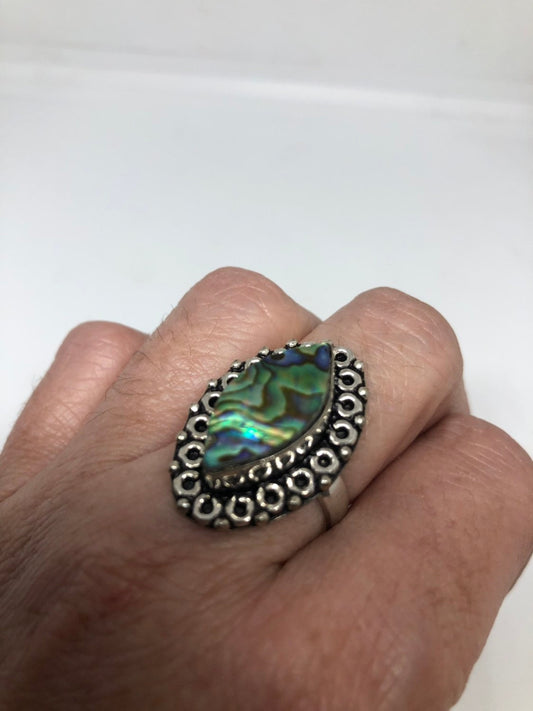 Antique Green Abalone White Bronze Silver Ring