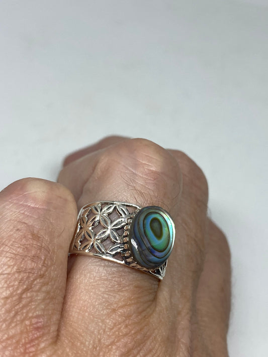 Antique Green Abalone Celtic Knot Filigree Sterling Silver Ring