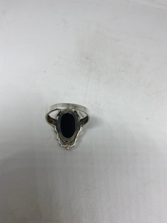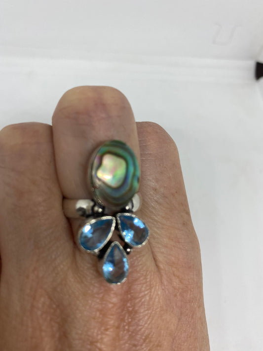 Antique Green Abalone Blue Topaz White Bronze Silver Ring
