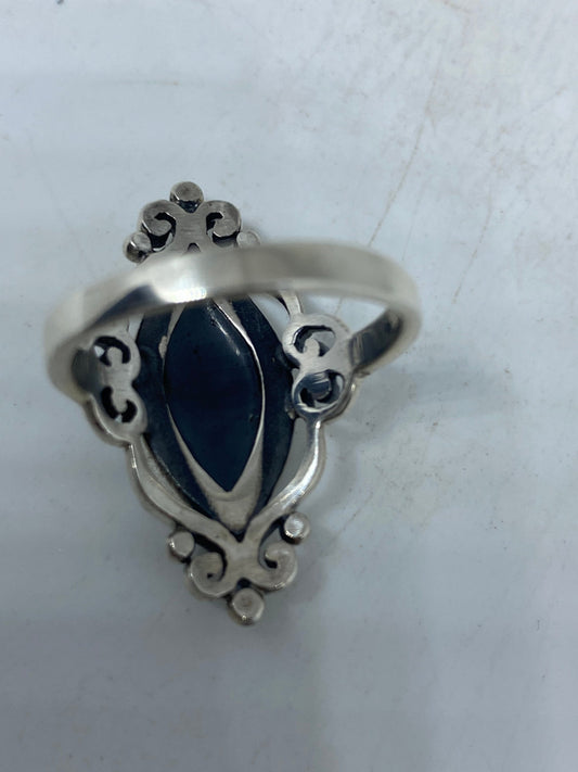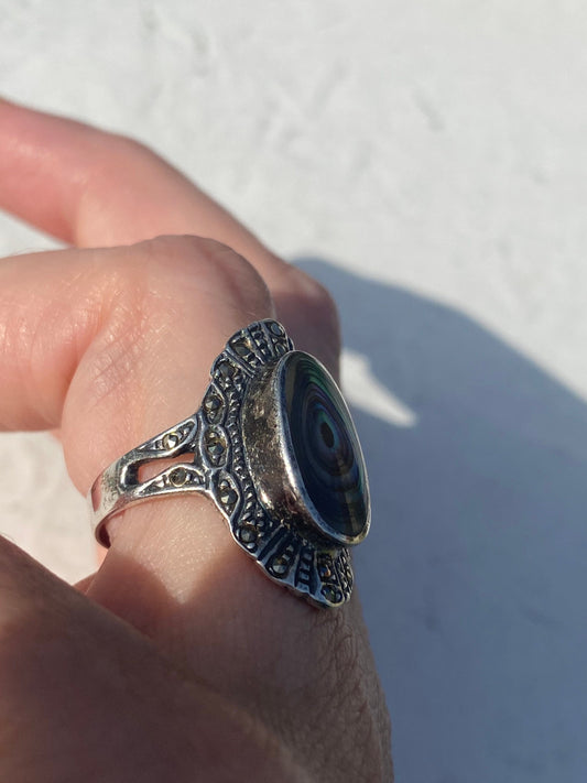 Antique Green Abalone Marcasite 925 Sterling Silver Ring