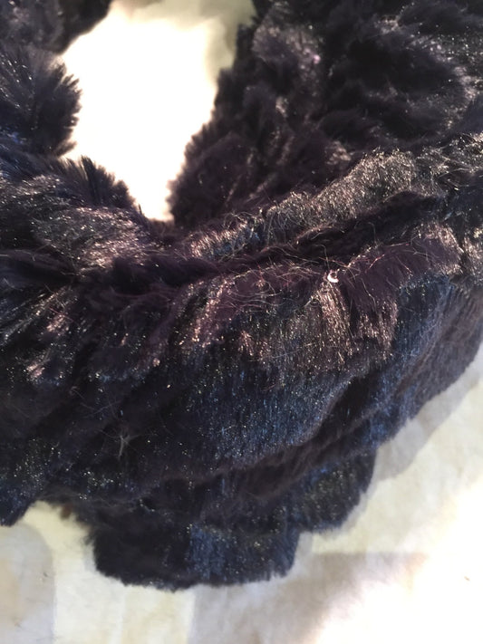 Nemesis Antique Vintage Styled Infinity Scarf, Black Furry Knit