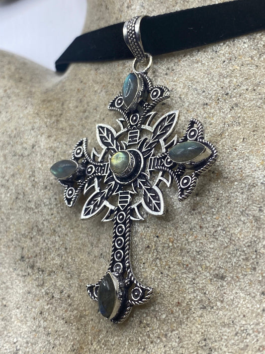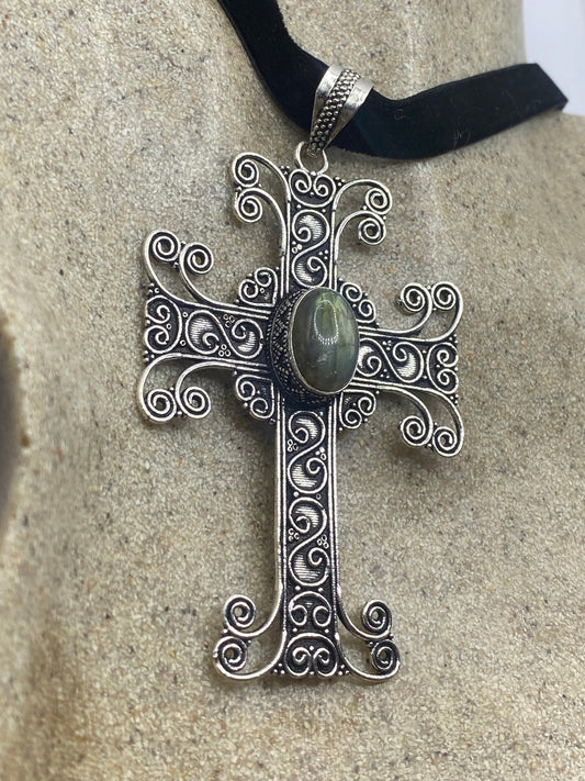 Nemesis Vintage Green Labradorite Cross Choker Pendant