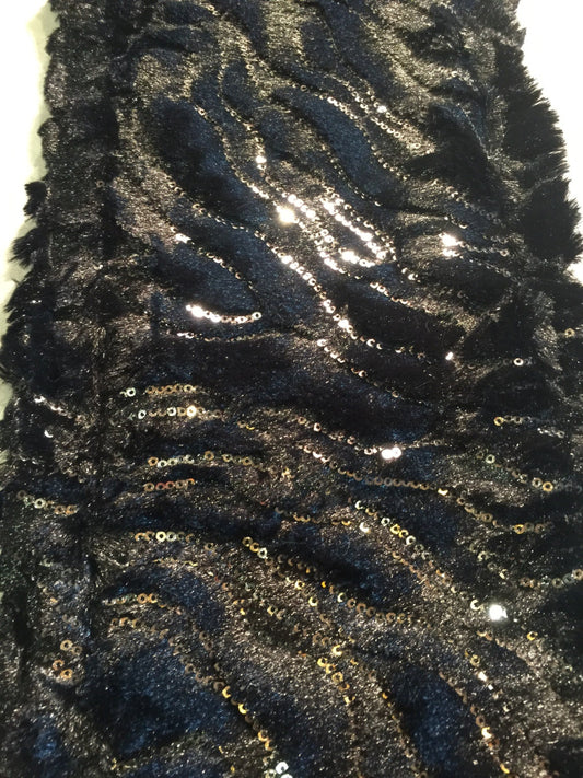 Nemesis Antique Vintage Styled Infinity Scarf, Navy Blue with Sequins, Furry Knit