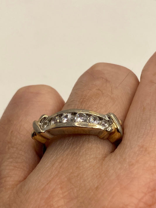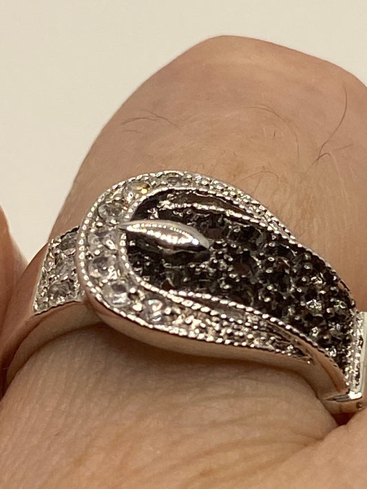 Vintage White Sapphire 925 Sterling Silver Buckle Wedding Band Ring