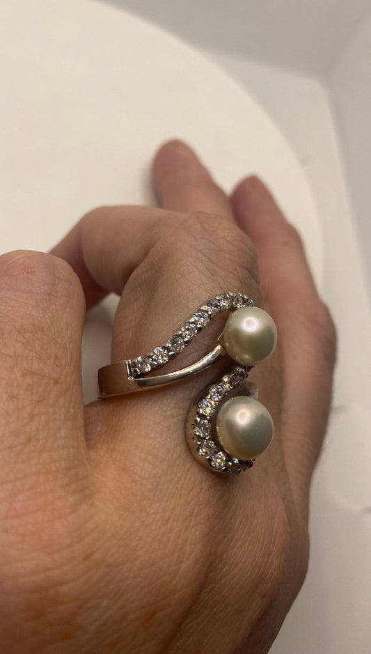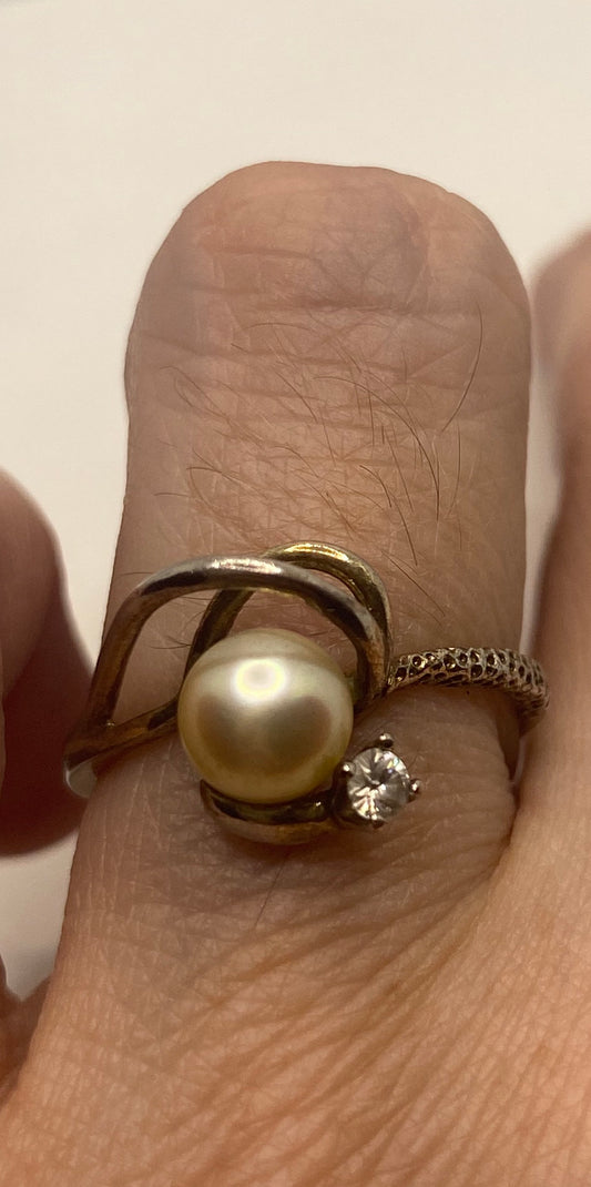 Vintage White Pearl 925 Sterling Silver Cocktail Ring Size 8