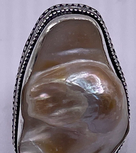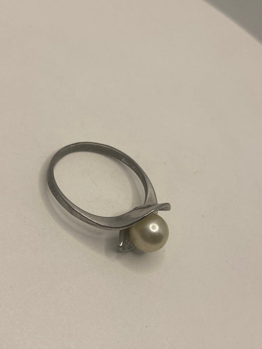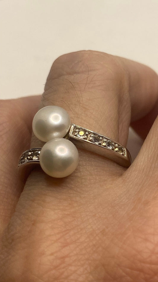 Vintage White Pearl 925 Sterling Silver Cocktail Ring Size 6.5