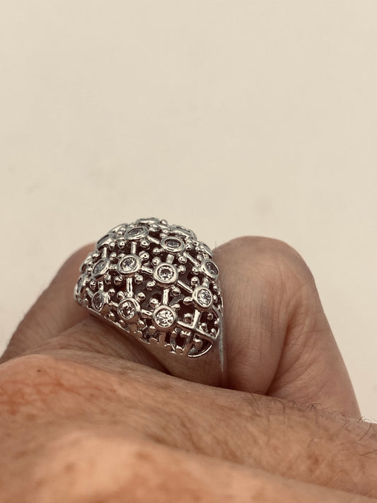 Vintage White Sapphire 925 Sterling Silver Flower Wedding Band Ring