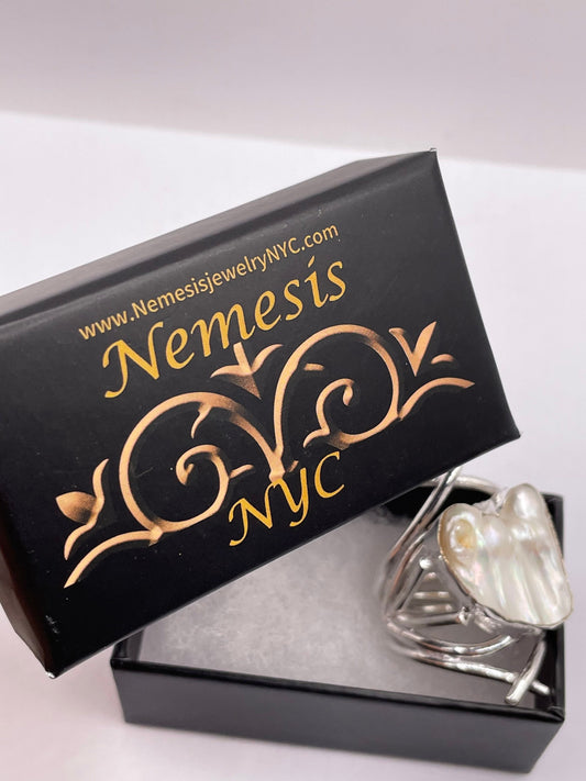 Vintage White Pearl Silver White Bronze Cocktail Ring