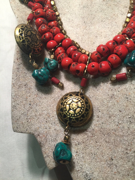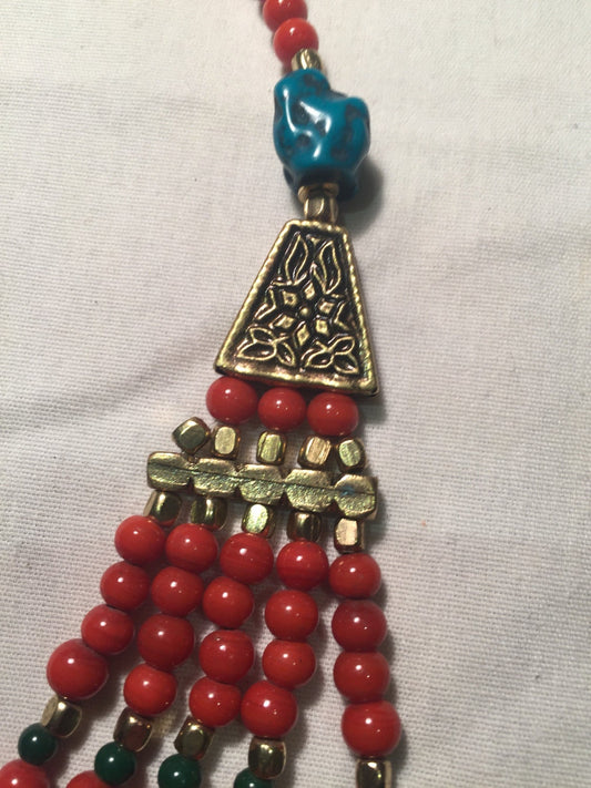 Vintage Hand Wrapped Red color enhanced Tibetan Necklace.