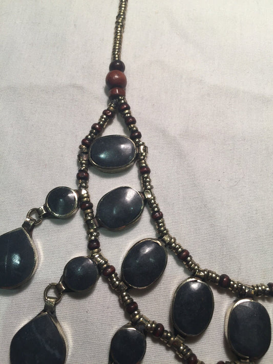 Vintage Hand Wrapped Tibetan grey Jasper Necklace.